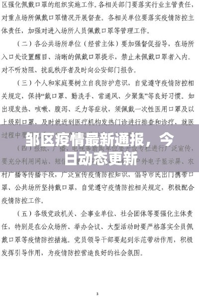 随着全球疫情的持续发展,各地的防控形势依然严峻,作为重要的城市区域之一,邹区的疫情防控工作备受关注,本文将围绕邹区今日疫情通报最新情况展开介绍,为读者提供最新的疫情防控信息。