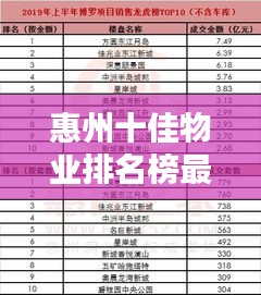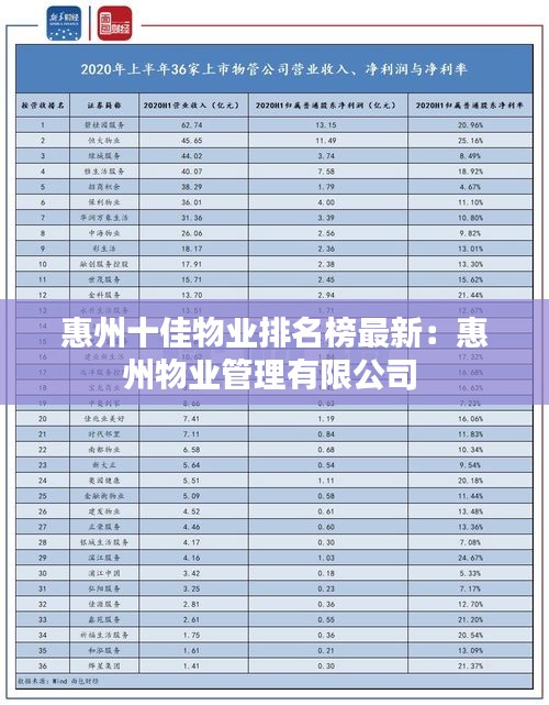 在众多物业公司的激烈竞争中,以下十家物业公司凭借其卓越的服务质量和良好的口碑,成功入选惠州十佳物业排名榜。以下是排名榜的具体情况: