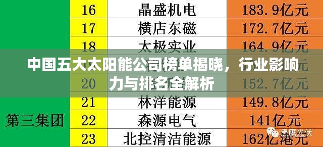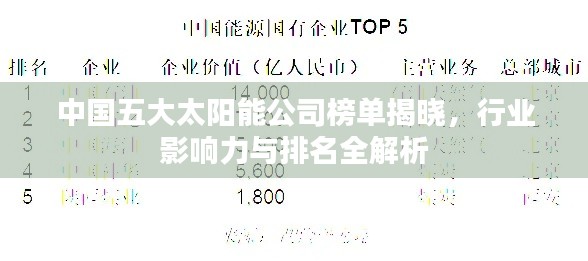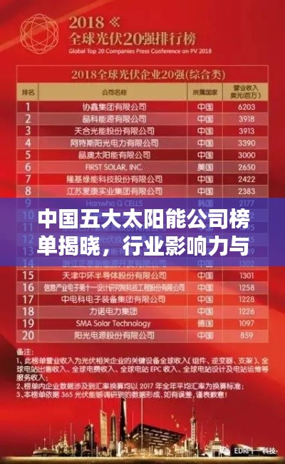 随着全球对可再生能源需求的日益增长,太阳能行业在中国得到了飞速的发展,众多太阳能公司如雨后春笋般涌现,其中五家公司在行业内表现尤为突出,成为了中国太阳能领域的佼佼者,本文将介绍中国五大太阳能公司的排名及其影响力。
