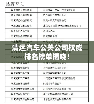随着汽车产业的蓬勃发展,清远地区的汽车公关公司亦如雨后春笋般涌现,本文将为您详细介绍清远地区汽车公关公司的排名,带您了解这一领域的佼佼者。