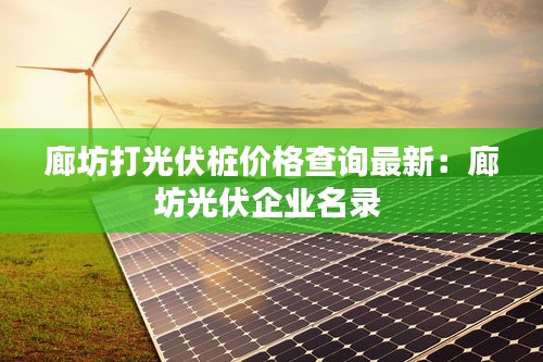 随着我国新能源政策的不断推广,光伏发电已成为许多家庭和企业青睐的清洁能源解决方案。廊坊作为河北省的一个重要城市,近年来光伏桩项目的建设也日益增多。本文将为您提供廊坊打光伏桩的最新价格信息,帮助您了解市场行情。
