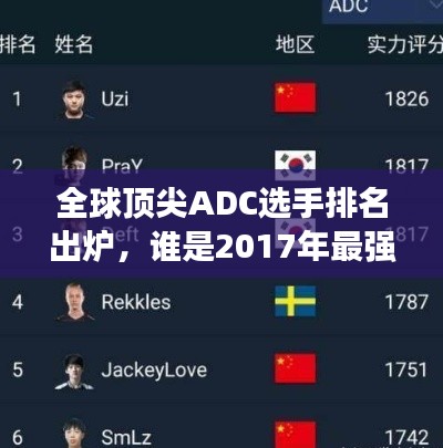 随着电子竞技的飞速发展,ADC(Attack Damage Carry)位置在游戏中扮演着越来越重要的角色,在2017年,众多ADC选手凭借出色的操作和独特的游戏理解,在全球范围内赢得了极高的声誉,本文将详细介绍2017年世界范围内的优秀ADC选手排名。