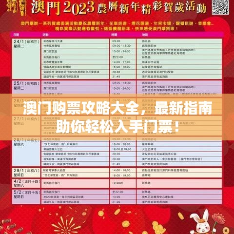 澳门,这座充满魅力的城市,不仅有丰富的文化遗产和旅游景点,还是博彩业的热门目的地,随着旅游业的发展,前往澳门参观、游玩和博彩的游客络绎不绝,本文将为大家提供一份澳门买票的最新攻略,帮助大家更好地了解和掌握在澳门购票的相关信息和技巧。