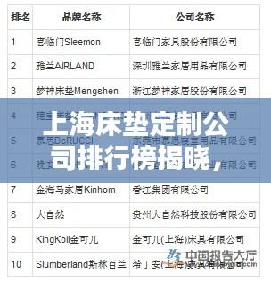 随着人们对生活品质的不断追求,家居环境的舒适度成为越来越多人关注的焦点,床垫作为保证睡眠质量的重要元素,其选择至关重要,而在国内众多城市中,上海以其独特的地理位置和先进的家居市场,孕育了一批专业的定制床垫公司,本文将为您详细介绍上海定制床垫公司的排名,帮助您更好地进行选择。