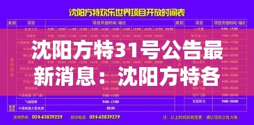 沈阳方特欢乐世界,作为东北地区最受欢迎的主题公园之一,近日发布了关于31号的重要公告。以下是对该公告的简要概述,旨在为游客提供最新信息和安排。