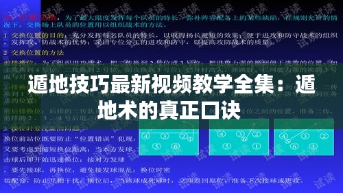 遁地技巧,顾名思义,是指在地面上进行隐蔽行走的技能。这种技巧在电影、小说以及现实中都有着广泛的应用。为了帮助大家更好地掌握这一技能,我们特别整理了最新的遁地技巧视频教学全集,以下将为您一一揭晓。