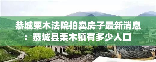 转载请注明来自马鞍山同杰良,本文标题:《恭城栗木法院拍卖房子最新消息:恭城县栗木镇有多少人口 》