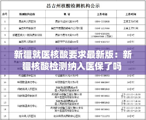 新疆就医核酸要求最新版旨在加强疫情防控工作,保障患者和医护人员的安全。请广大患者密切关注当地疫情防控政策,遵守相关规定,共同抗击疫情。祝您身体健康,早日康复!