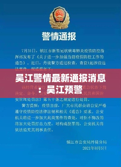 近日,吴江警方针对近期发生的各类案件进行了全面梳理,并对一些重要案件进行了最新通报。以下为吴江警情最新通报的主要内容: