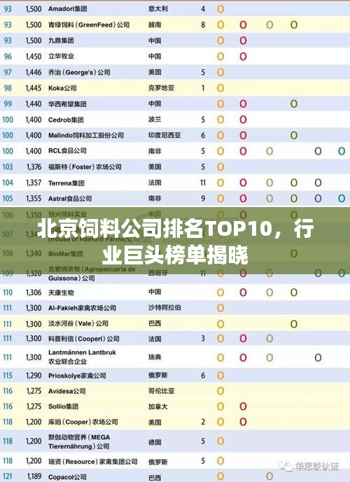 1、XX饲料公司:作为北京乃至全国领先的饲料供应商之一,XX饲料公司凭借其高质量的产品和广泛的市场覆盖,长期占据市场领先地位,该公司注重科技创新,拥有先进的生产设备和技术,致力于为客户提供优质的饲料产品和服务。