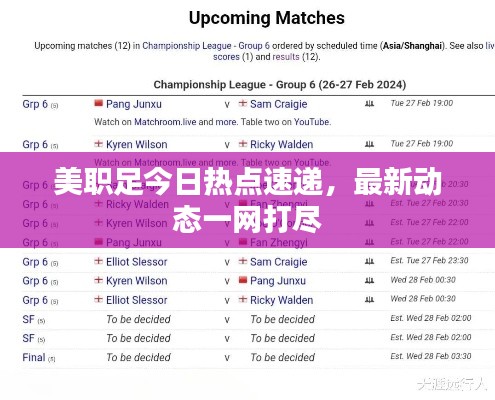 随着足球运动在全球范围内的普及与发展,美国职业足球大联盟(MLS)也日渐成为球迷关注的焦点,本文将结合最新赛事动态,为您推荐今日美职足的精彩赛事。