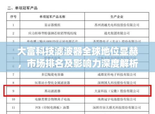 转载请注明来自马鞍山同杰良,本文标题:《大富科技滤波器全球地位显赫,市场排名及影响力深度解析》
