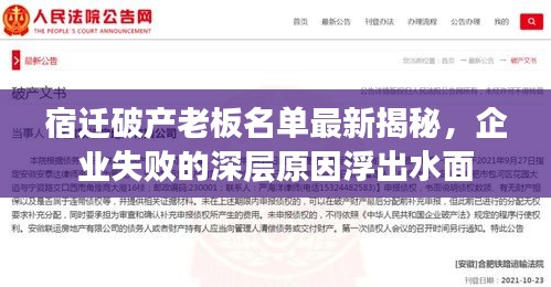宿迁市破产老板名单最新公布,引起了社会各界的广泛关注,这些企业曾经的辉煌如今已化为泡影,令人不禁对这些企业失败的原因进行深思,本文将围绕这一事件,分析破产老板的名单,探讨企业失败的深层原因,并以此为契机,提出防范建议。