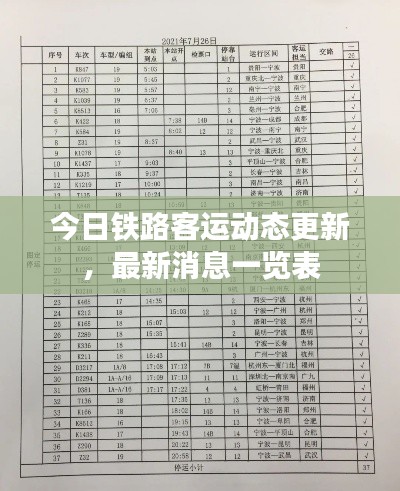 随着社会的快速发展,铁路运输作为重要的交通方式之一,承担着日益繁重的客运任务,本文将对今日铁路客运最新消息表进行详细介绍,以便广大旅客及时掌握最新的铁路客运信息。