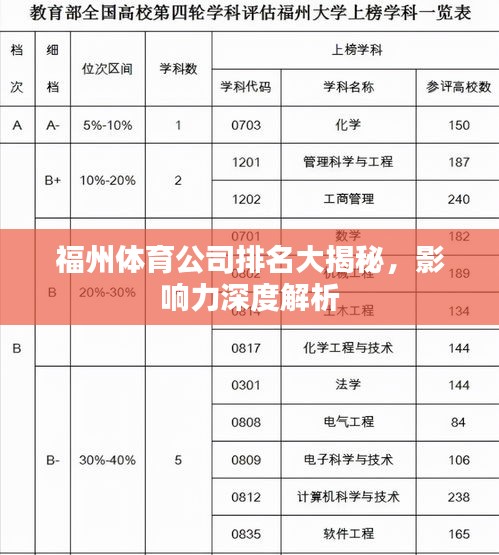 福州,这座美丽的海滨城市,不仅是福建省的省会,也是体育事业蓬勃发展的热点地区之一,随着人们对健康生活的追求日益增强,体育产业的发展也日益受到关注,本文将探讨福州体育公司的排名及其影响力。