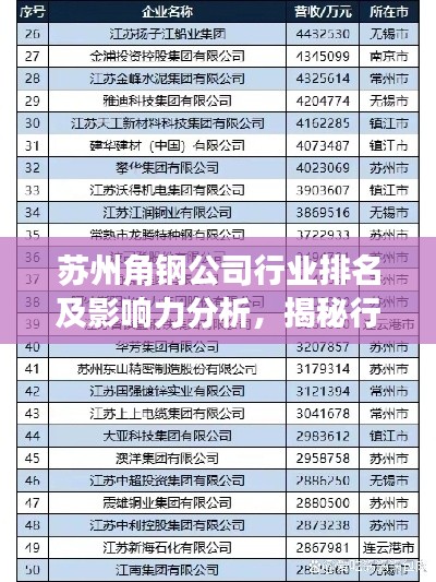 转载请注明来自马鞍山同杰良,本文标题:《苏州角钢公司行业排名及影响力分析,揭秘行业巨头及其影响力》