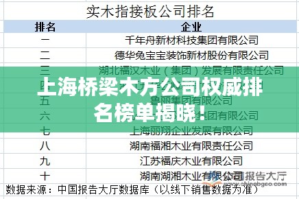 随着城市化进程的加快,桥梁建设日新月异,其中木方作为桥梁建设的重要材料之一,市场需求逐渐增加,在这样的市场背景下,上海众多桥梁木方公司纷纷崭露头角,本文将为您介绍上海桥梁木方公司的排名,以便您更好地了解这些企业的发展状况。