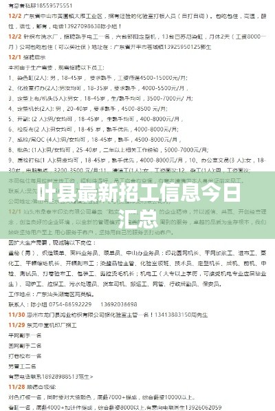 是叶县最新招工信息今日概述,希望能为广大求职者提供帮助,如果您有任何疑问或需要进一步的信息,请随时联系我们。