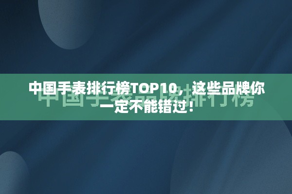 中国手表制造业经过多年的发展,已经取得了长足的进步,随着消费者对品质生活的追求,中国手表品牌逐渐崭露头角,以其精湛的工艺、卓越的性能和独特的设计赢得了国内外消费者的喜爱,下面将为您介绍中国手表排名前十名。