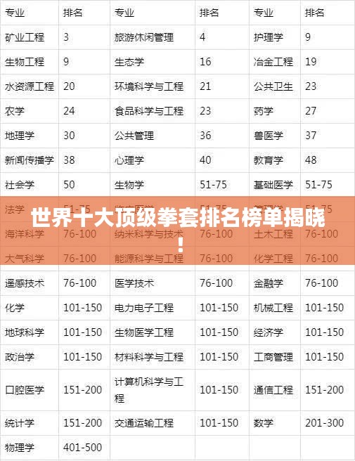 拳击运动是充满激烈对抗与竞技激情的体育项目,而拳套作为保护拳头、增强攻击力的关键装备,对于拳击手而言具有至关重要的作用,在世界拳击领域中,各种品牌、型号的拳套琳琅满目,各具特色,本文将为您揭晓世界顶级拳套排名前十名,带您走进这些传奇装备的精彩世界。