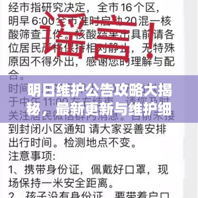 随着科技的不断发展,软件、游戏等平台的维护更新已成为日常,对于玩家或者使用者来说,了解明日维护公告的攻略,可以更好地安排自己的时间,避免不必要的困扰,本文将为大家带来最新的明日维护公告攻略,帮助大家更好地了解维护细节,合理安排个人计划。