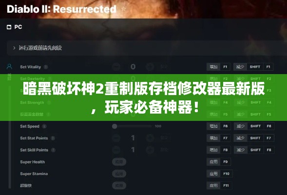 随着科技的进步和游戏行业的发展,许多经典游戏都迎来了重制或翻新的机会,备受玩家瞩目的暗黑破坏神2(Diablo II)重制版也受到了广大玩家的热烈欢迎,在游戏中,有时玩家可能会遇到一些困难或想要调整游戏设置以获得更好的体验,这时,一款名为“暗黑破坏神2重制版存档修改器最新版”的工具应运而生,为玩家提供了极大的便利。