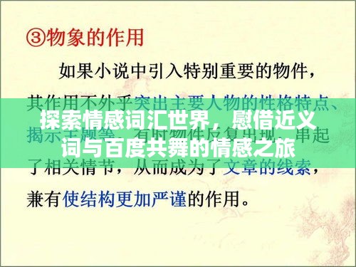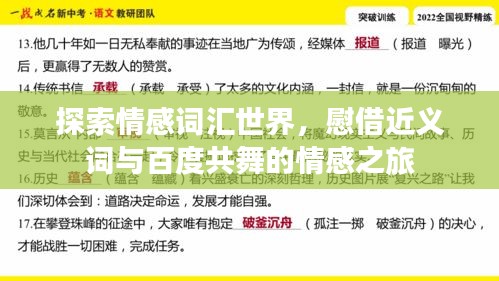 在信息时代的浪潮中,我们每天都在接触着海量的词汇,它们如同繁星般点缀在我们的生活中,当我们谈论情感、安慰和鼓励时,"慰借"一词便跃然纸上。"慰借"的近义词又有哪些呢?让我们一起来百度一下,探索这个情感词汇的世界。