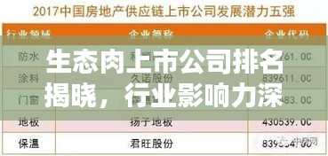 随着人们对食品安全与健康问题的日益关注,生态肉产业得到了迅猛发展,在此背景下,众多生态肉上市公司凭借其在产业链中的优势脱颖而出,本文将探讨生态肉上市公司的排名及其行业影响力,揭示这些企业在推动生态肉产业发展中的重要作用。