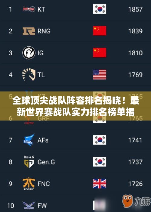 转载请注明来自马鞍山同杰良,本文标题:《全球顶尖战队阵容排名揭晓!最新世界赛战队实力排名榜单揭晓》