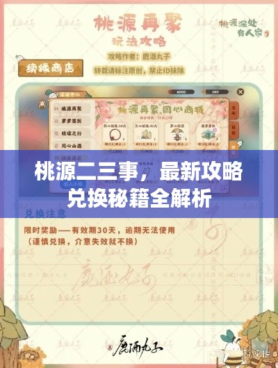 桃源二三事最新攻略兑换全解析,旨在为您提供最全面、最实用的攻略信息,让您轻松掌握桃源的奥秘,兑换心仪的奖励,希望本攻略能够帮助您在桃源世界中畅游无阻,享受游戏的乐趣。