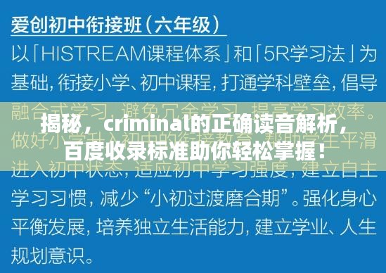 当我们遇到生词或不熟悉的发音时,百度成为了我们的得力助手,我们就来一起探讨一下“百度一下crminal读音”这个关键词,深入了解其发音及其相关含义。