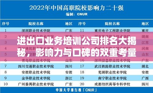 随着全球化的不断发展,进出口贸易成为企业发展的重要组成部分,为了提升企业的竞争力,许多企业开始重视进出口业务培训,并寻求专业的培训公司来提供优质的服务,本文将介绍一些在进出口业务培训领域表现突出的公司排名及其影响力。