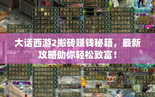 转载请注明来自马鞍山同杰良,本文标题:《大话西游2搬砖赚钱秘籍,最新攻略助你轻松致富!》