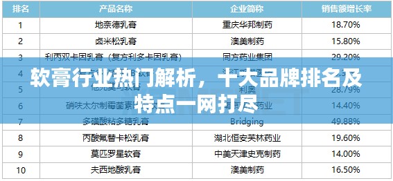 在医疗保健领域,软膏作为一种常见的药物剂型,广泛应用于各种皮肤问题、炎症、感染等疾病的治疗,本文将介绍软膏市场上备受瞩目的排名前十名产品,它们凭借独特的优势,赢得了消费者的信赖和好评。