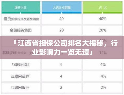 江西省作为中国经济的重要一环,其担保行业的发展态势引人注目,随着金融市场的日益繁荣,江西省的担保公司在促进地方经济发展,尤其是支持中小企业发展方面发挥着举足轻重的作用,本文将探讨江西省担保公司的排名及其行业影响力。