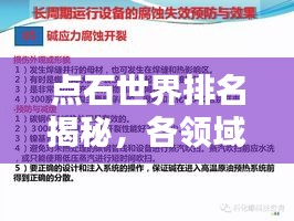 点石,作为一个具有独特含义的词汇,其在不同领域有不同的解读,在游戏领域,点石可能代表着一种珍贵的资源;在珠宝行业,点石则可能指的是珍贵的矿石,在现实生活中,点石也被赋予了发现、识别、利用机会等含义,探讨点石世界排名,需要从多个角度全面分析。
