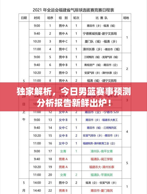 随着篮球运动的全球普及,男篮比赛成为广大球迷关注的焦点,本文旨在分析今日男篮比赛的情况,结合最新动态和数据分析,为广大球迷带来一份全面的预测分析报告。