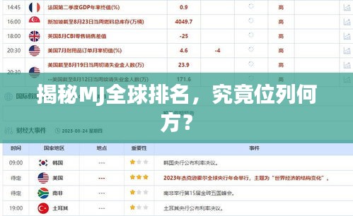 在当今的流行文化中,MJ无疑是一个备受瞩目的名字,究竟MJ在世界范围内排名第几?本文将为您揭示MJ的世界排名及其背后的故事。