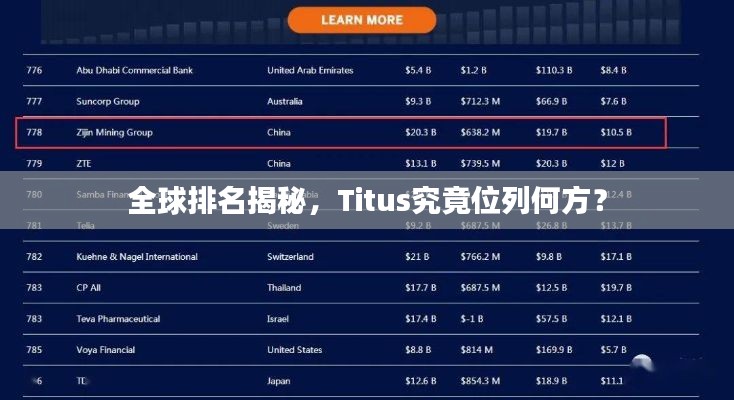 Titus在全球范围内的知名度和影响力都非常高,无论是在音乐、艺术还是科技领域都有着它的身影,至于具体的排名,需要根据不同的领域和评估标准来进行详细的评估和分析,我们期待在未来的日子里,Titus能在更多的领域展现出其卓越的影响力和成就。