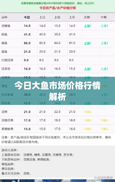 今日大鱼的最新价格行情整体呈现稳中有升的态势,消费者和投资者需密切关注市场动态,以做出明智的决策,养殖企业和政府部门也应加强合作,共同推动行业健康发展。