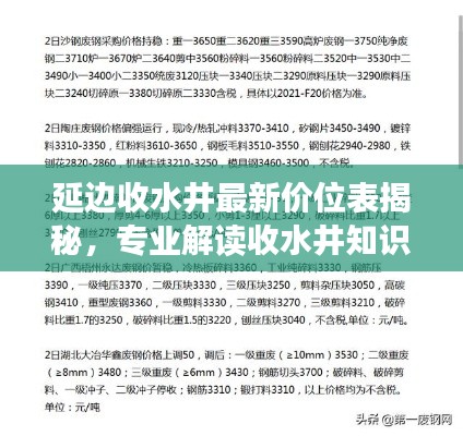 随着城市建设的不断推进,排水系统作为城市基础设施的重要组成部分,其建设与维护日益受到关注,收水井作为排水系统中的重要组成部分,其价格及市场动态备受关注,本文将围绕“延边收水井价位表最新”这一主题展开,为广大市民提供有关收水井的价位信息及相关知识介绍。