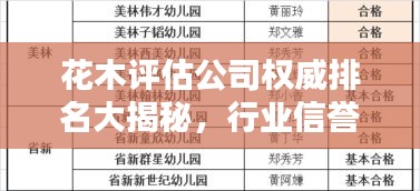随着城市化进程的加快,园林设计与花木产业日益繁荣,花木评估公司的需求也随之增长,本文将为您揭示当前花木评估公司的排名,带您了解行业的权威与信誉力量。
