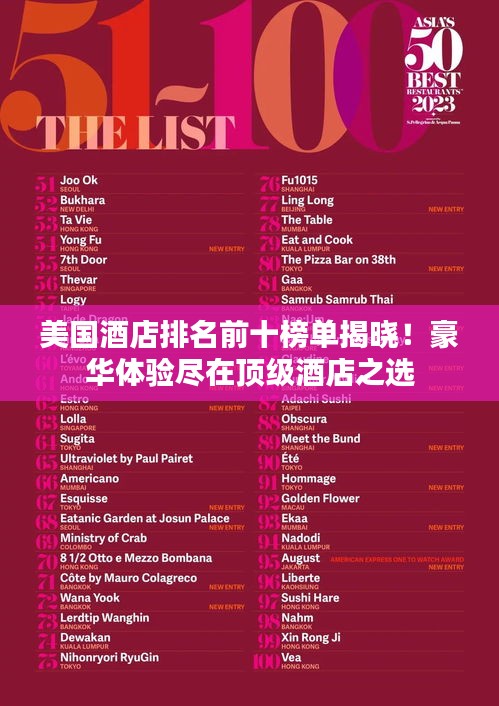 转载请注明来自马鞍山同杰良,本文标题:《美国酒店排名前十榜单揭晓!豪华体验尽在顶级酒店之选》