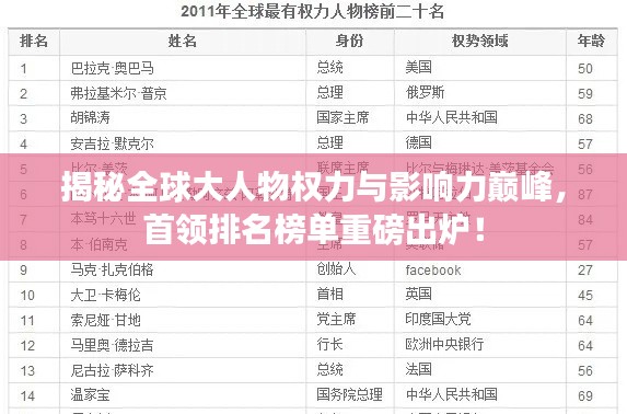 转载请注明来自马鞍山同杰良,本文标题:《揭秘全球大人物权力与影响力巅峰,首领排名榜单重磅出炉!》