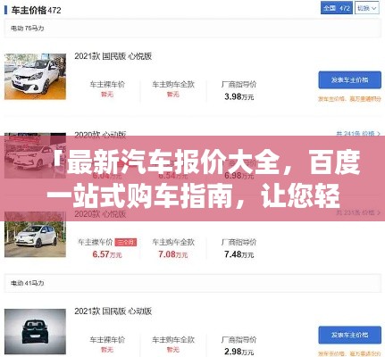 “百度一下汽车报价大全”是一款便捷的汽车信息查询平台,通过整合各大汽车品牌的官方报价、经销商报价以及市场实时信息,为消费者提供全面、准确的汽车报价数据,只需在搜索引擎中输入相关关键词,即可轻松获取各类汽车的最新报价信息。