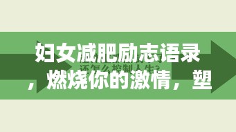 妇女们,在减肥的道路上,我们或许会疲惫、会迷茫,但请不要放弃,以上这些励志语录,希望能为你带来力量,激励你在减肥的路上坚持不懈,每一个努力的日子,都是为了更好的自己,勇敢追求,做自己的瘦身女神,相信自己,你一定可以,也要记得保持健康的生活方式,合理减肥,让美丽与健康并存。