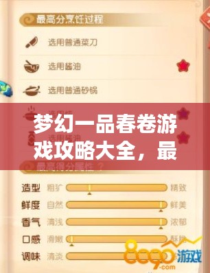 梦幻一品春卷作为一款休闲游戏,不仅具有趣味性,还能让玩家了解春卷的制作过程,通过本攻略,希望广大玩家能够更好地掌握游戏技巧,解锁更多精彩内容,祝愿大家在梦幻一品春卷的游戏世界中度过愉快的时光!