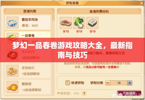 梦幻一品春卷,作为一款融合传统与创新的休闲游戏,吸引了众多玩家的关注,本攻略旨在为广大玩家提供最新的游戏攻略,帮助大家更好地体验游戏,解锁更多精彩内容。
