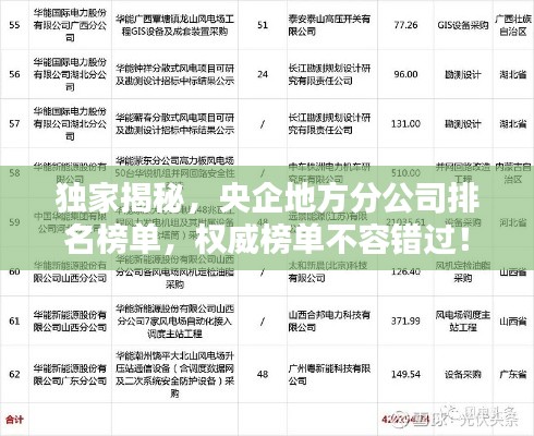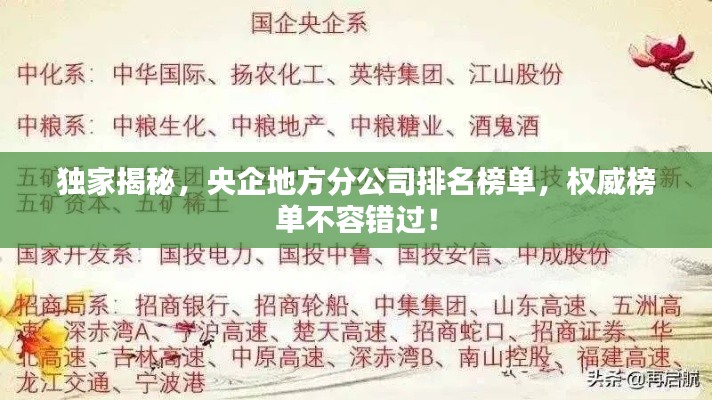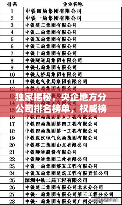 转载请注明来自马鞍山同杰良,本文标题:《独家揭秘,央企地方分公司排名榜单,权威榜单不容错过!》