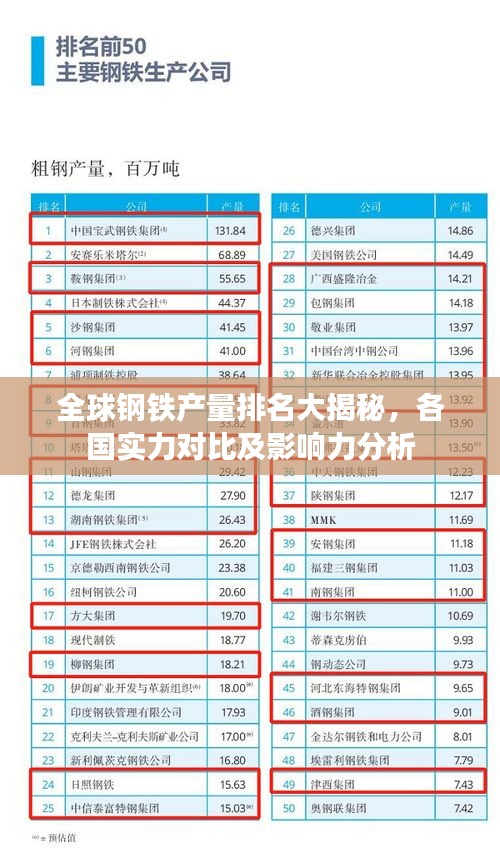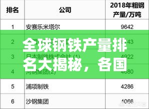 钢铁产业作为全球经济的重要支柱,其产量是衡量一个国家工业化水平的关键指标之一,本文将对世界各国钢铁产量进行排名,并分析其背后的原因及影响力。